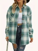 Featuring a plaid pattern and straw buttons, it's perfect for both office and casual settings.